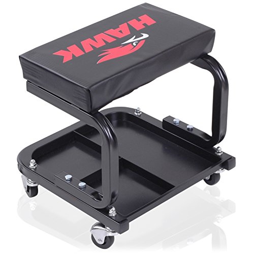 Hawk Tools, sgabello quadrato con ruote, adatto a negozi di auto e furgoni e officine di meccanici, con pistone pneumatico