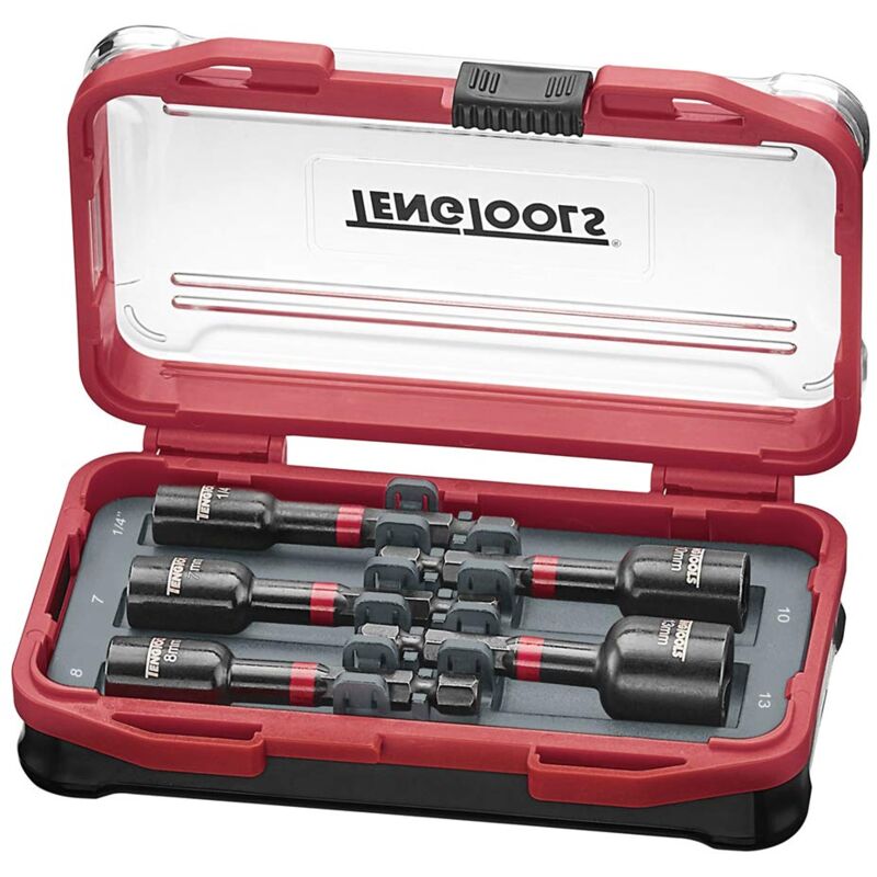 Descrizione Il set Teng TBNSI5 Impact Nut Setters contiene una selezione di dosatori per l'uso con utensili elettrici a impatto. Realizzato in acciaio S2 con durezza HRC50-60. Il design crea una torsione ancora più elevata per un uso più facile. Un magnete da incasso tiene il fissaggio (solo materiali ferrosi). Fornito in una pratica custodia.