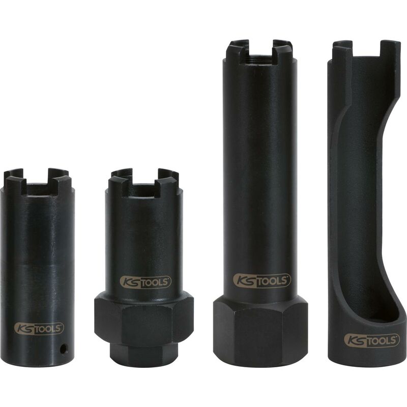 Per avvitare e svitare dadi di pressione sui supporti iniettori Assortimento delle più comuni bussole a denti per dadi di pressione Ideale per i veicoli commerciali Pezzi in set 4 Peso del tessuto 1010 Imballaggio ohne Koffer Dimensioni dell'imballaggio 1