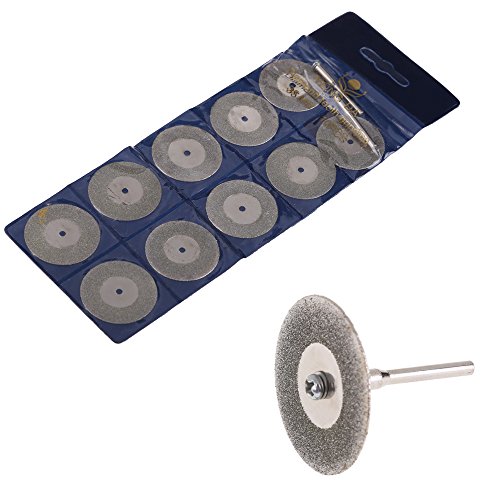 Toolscentre 10Pcs 22mm Mini Diamond Saw Blade Silver Cutting Discs With 2Pcs Connecting Shank For Dremel Drill Bit Rotary Tool.
