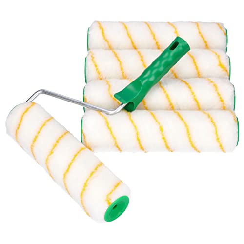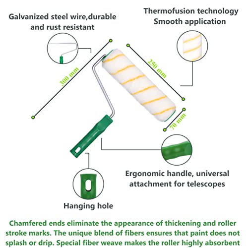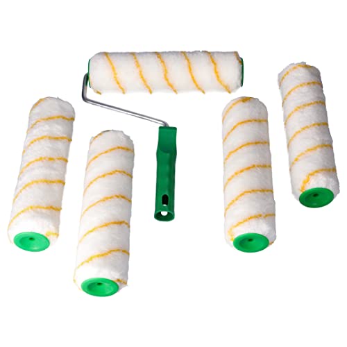 RULLI DI VERNICE UNIVERSALI - I nostri rulli di vernice con fibre poliacriliche assorbenti, lunghi 25 cm, sono progettati per lattice, dispersione e vernici acriliche. Grazie alla tecnologia di termofusione utilizzata, questi rulli assicurano un'applicazione uniforme dell'inchiostro. Il set contiene 5 pezzi. L'altezza del pile è di 11 mm e il diametro della manica è di 48 mm.