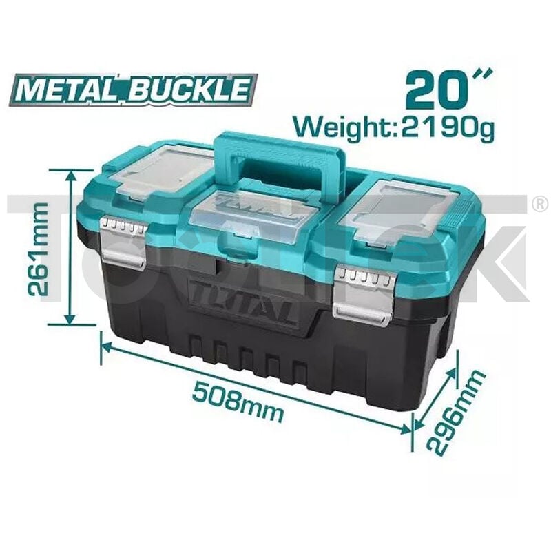 Valigetta Cassetta Porta Utensili 20 TOTAL CARATTERISTICHE: Misure: 508mm x 296mm x 261mm Portata 20Kg Con 3 vaschette porta minuterieManiglia per una facile presa e trasportoChiusura con 2 Cerniere in metallo Prodotto di qualità LA FATTURA VIENE EMESSA PER IMPORTI SUPERIORI A € 20 E VA RICHIESTA AL MOMENTO DELL'ACQUISTO