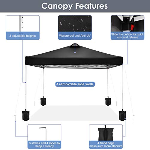 TOOLUCK 3x3m Gazebo da Giardino Pieghevole Gazebo Impermeabile Tenda da Giardino con Prese D'aria 4 Pareti Laterali e 4 Borsa, Nero