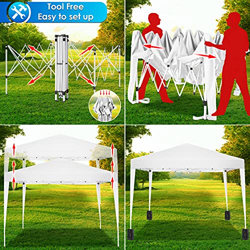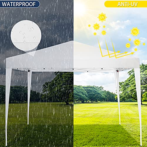 TOOLUCK Gazebo pieghevole 3 x 3 impermeabile, protezione dai raggi UV, tenda da giardino pop-up con 4 sacchi di sabbia, bianco puro