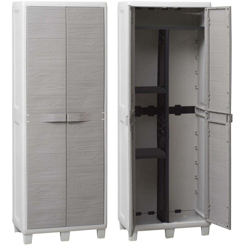 Armadio a 2 ante con vano porta-attrezzi e 3 ripiani posizionabili a diverse altezze, con blocco anti-ribaltamento - effetto legno - per interni - top/fondo antiristagno con feritoia - fissare a muro - portata max. kg.15 - certificato t?v-gs - lucchettabi