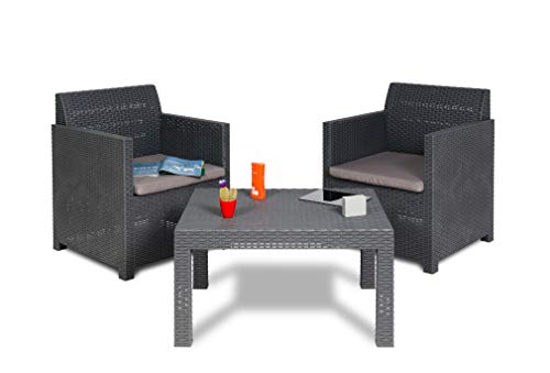 Toomax Set da Giardino Leda in Polipropilene, 2 posti, un tavolino, colore nero