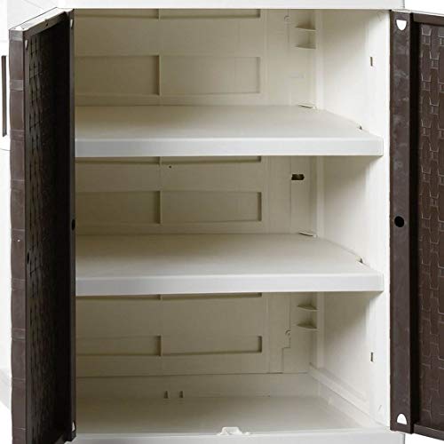 Decorazione simil-rattan. Resistente a basse temperature, per interni ed esterni. Portata max. per ripiano: 30 kg. Tempo di montaggio: 10 min.