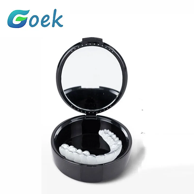 Tooth Storage Box With Mirror Oval Denture Storage Orthodontic Retainer Portable Molar Braces Box 2 Colors