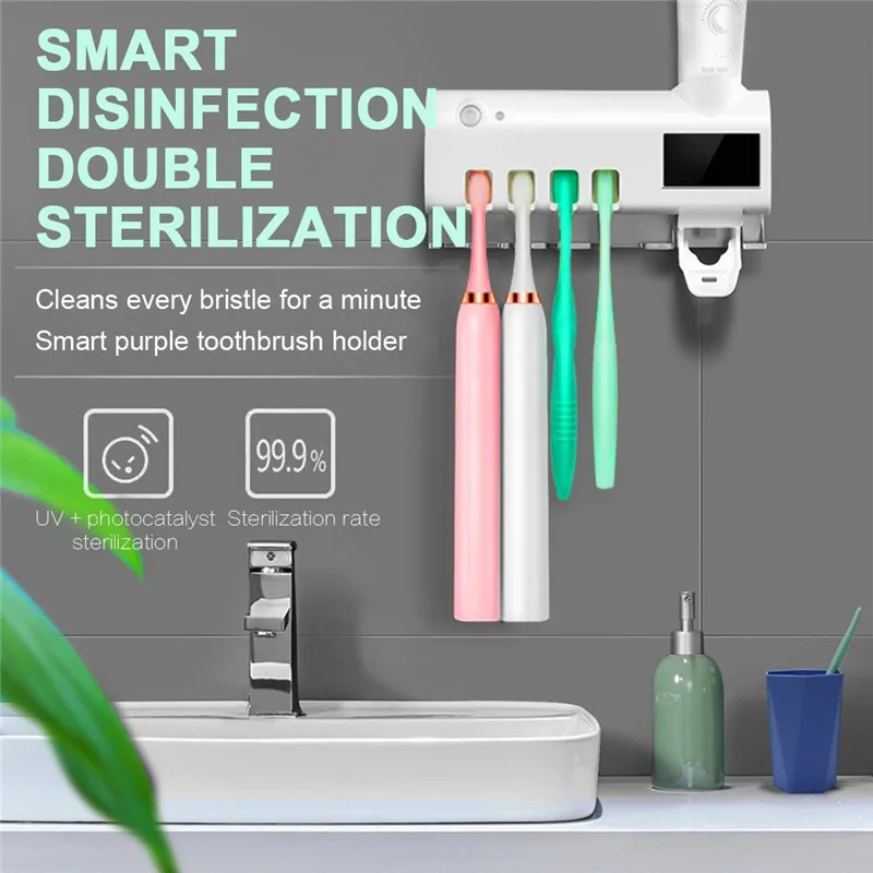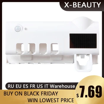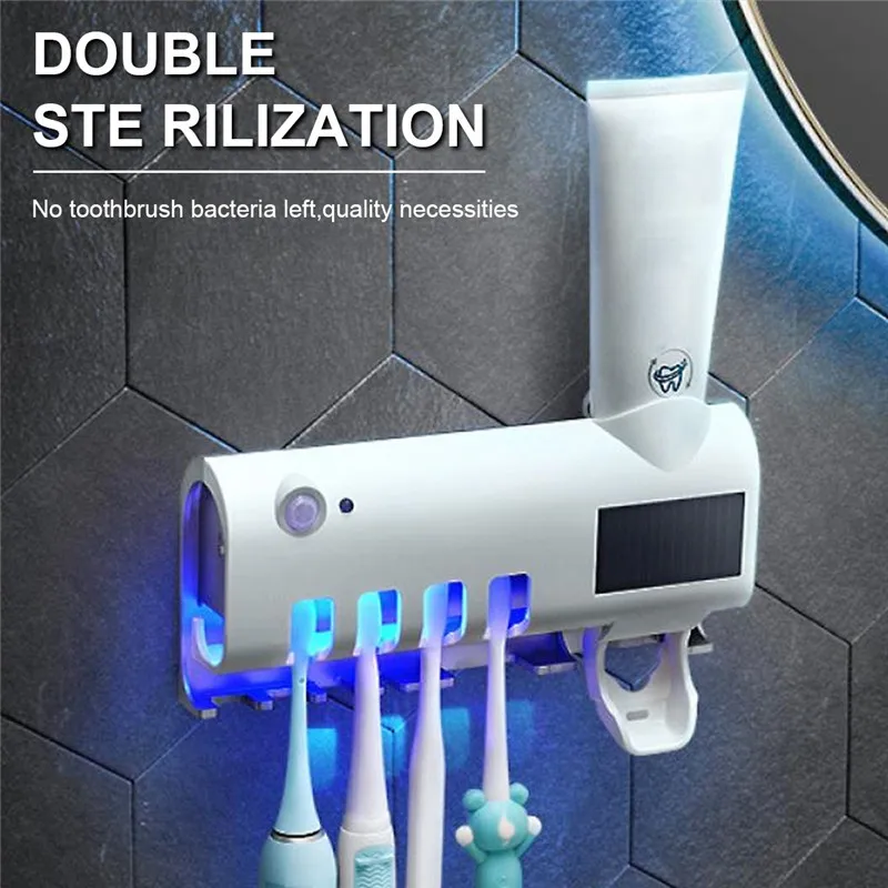 UV Toothbrush Holder Toothpaste Dispenser Solar Energy Bathroom Toothbrush Storage Box Multi-function Storage Holder USB Charge