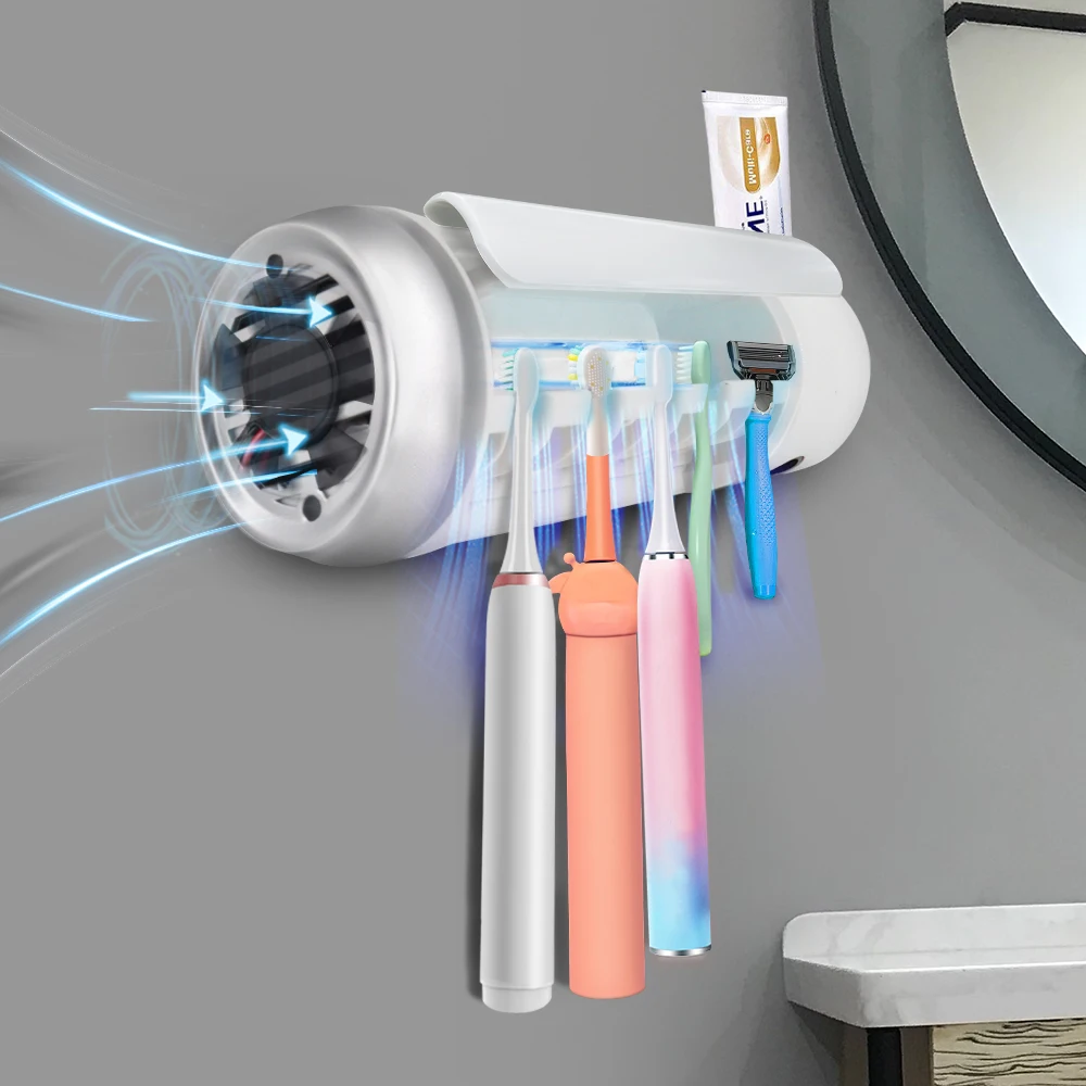 UV Toothbrush Sterilizer Ultraviolet Toothbrush Holder Wall-mount Toothpaste Holder with Quick Fan Dry Home Bathroom Accessories