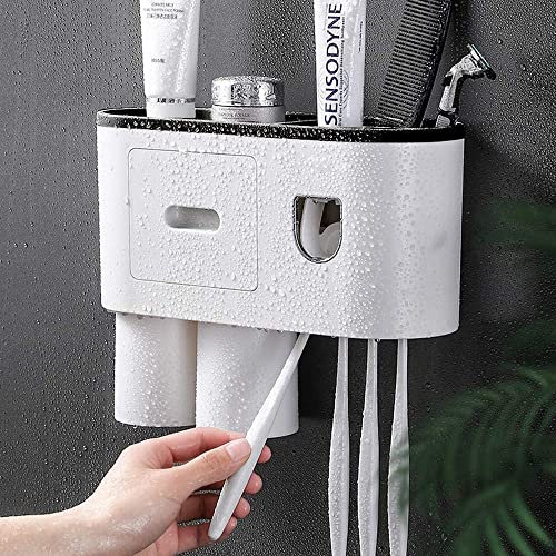 TOOYOO Organizer da parete per spazzolino da denti, dispenser automatico di dentifricio con 2 bicchieri magnetici, porta spazzolino elettrico, accessorio da bagno, scaffale per conservazione, nero