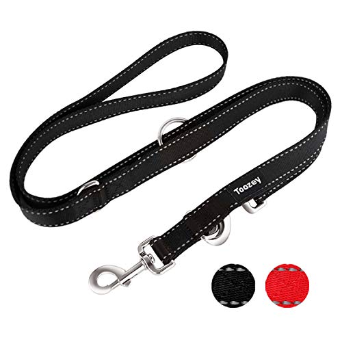Toozey - Guinzaglio doppio per cani, regolabile in 3 posizioni, riflettente, 2 m, in nylon robusto, per cani di taglia piccola, media e grande e selvatica, colore: nero