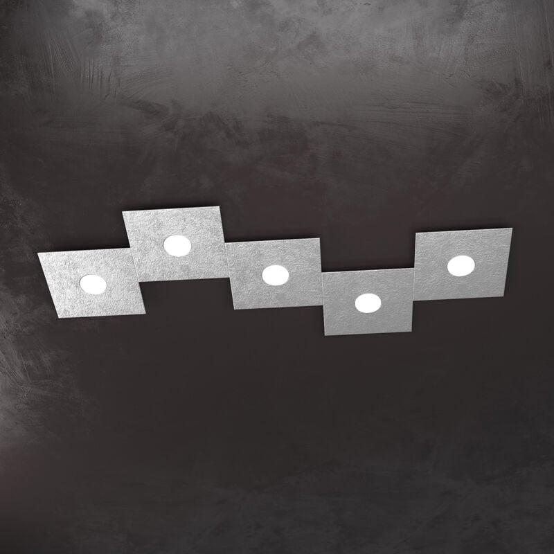 Collezione Eccentric LA LUCE ADATTABILE E FLESSIBILE Lampada 5 luci formata da cinque lastre quadrate di metallo verniciato in finitura foglia argento.. Queste lampade sono componibili e personalizzabili, così puoi creare infinite forme e mix di colori. I componenti base sono due: uno con sorgente luminosa (1156/1L) e uno solo decorativo (1156/1D). Questi componenti possono essere assemblati fra loro per creare infinite forme e mix di colori. Per comodità vengono proposti alcuni kit precomposti con codice dedicato all' interno del sito. La presente collezione in quanto componibile è indicata per risolvere problemi di decentramento tra punto luce e zona da illuminare. Un altro punto di forza del prodotto consiste nel non utilizzare dei led integrati ma una lampadina Gx53 che, una volta montata, arriva a filo della lastra metallica e può essere facilmente sostituita dall'esterno. Scopri la Serie Eccentric e lasciati ispirare dalla sua versatilità e qualità.Questo articolo è disponibile