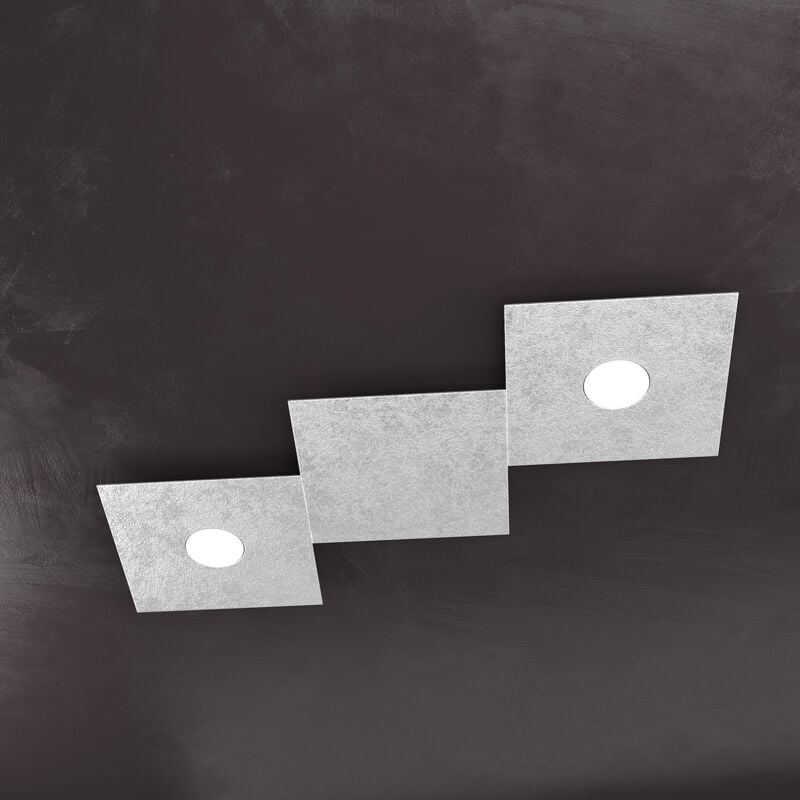 Collezione Eccentric LA LUCE ADATTABILE E FLESSIBILE Lampada 2 luci formata da tre lastre quadrate, una decorativa e due con le luci, tutte di metallo verniciato in finitura foglia argento.. Queste lampade sono componibili e personalizzabili, così puoi creare infinite forme e mix di colori. I componenti base sono due: uno con sorgente luminosa (1156/1L) e uno solo decorativo (1156/1D). Questi componenti possono essere assemblati fra loro per creare infinite forme e mix di colori. Per comodità vengono proposti alcuni kit precomposti con codice dedicato all' interno del sito. La presente collezione in quanto componibile è indicata per risolvere problemi di decentramento tra punto luce e zona da illuminare. Un altro punto di forza del prodotto consiste nel non utilizzare dei led integrati ma una lampadina Gx53 che, una volta montata, arriva a filo della lastra metallica e può essere facilmente sostituita dall'esterno. Scopri la Serie Eccentric e lasciati ispirare dalla sua versatilità e