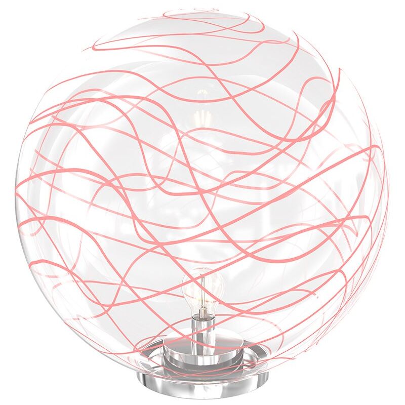 Collezione Moon LUCE E ARTE, UN CONNUBIO PERFETTO Lampada da appoggio con un globo di vetro soffiato trasparente dal diametro di 40cm, impreziosito da una decorazione in filo di vetro in finitura rosso.. Creando un effetto di luce e colore suggestivo e romantico. La struttura è in metallo cromato, che le conferisce un tocco di eleganza e di modernità. Moon è la luce che dona fascino e personalità al tuo spazio, sia che tu la usi per illuminare il tuo soggiorno, la tua camera da letto o il tuo bagno.Questo articolo è disponibile in diverse finiture e/o dimensioni. E' possibile indicarlo nell'apposito campo NOTE presente in conclusione di ordine oppure contattarci dopo aver effettuatol'ordine.