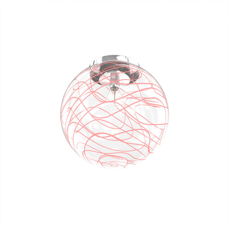 Collezione Moon LUCE E ARTE, UN CONNUBIO PERFETTO Plafoniera con un globo di vetro soffiato trasparente dal diametro di 30cm, impreziosito da una decorazione in filo di vetro in finitura rosso.. Creando un effetto di luce e colore suggestivo e romantico. La struttura è in metallo cromato, che le conferisce un tocco di eleganza e di modernità. Moon è la luce che dona fascino e personalità al tuo spazio, sia che tu la usi per illuminare il tuo soggiorno, la tua camera da letto o il tuo bagno.Questo articolo è disponibile in diverse finiture e/o dimensioni. E' possibile indicarlo nell'apposito campo NOTE presente in conclusione di ordine oppure contattarci dopo aver effettuatol'ordine.