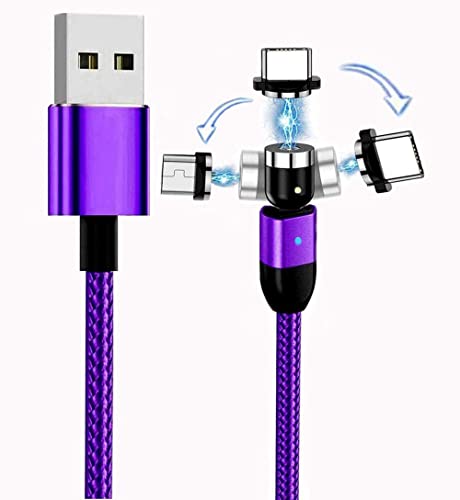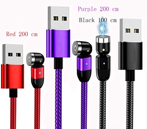 Top-Longer Cavo di Ricarica Magnetico 1 m, 1 m, 2 m, 360 °+180 ° con Micro USB, Tipo C, Smartphone, Tablet -Rosso+Viola+Nero