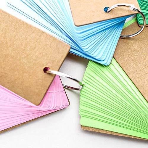 TOP-Pindu - Schede Flash, confezione da 6, 300 pezzi, schede per studio o revisione, indice, carta kraft, per promemoria, per appunti al volo, con anello in metallo, 6 colori