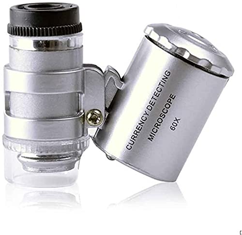 TOPALLI - Mini microscopio tascabile 60x Lente d'ingrandimento a mano rilevatore di monnaie gioielliere con luce LED