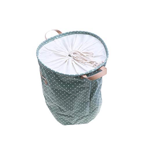 TOPBATHY - Cesto portabiancheria Pieghevole in Tessuto, a Pois, Colore: Verde
