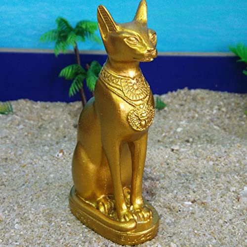 TOPBATHY Statua di Bastet Goddess Egiziana Antica Statua di Bastet Oro Gatto Figurine Resina Buona Fortuna Gatto Decorazione Feng Shui Animale Scultura per Ricchezza Fortuna