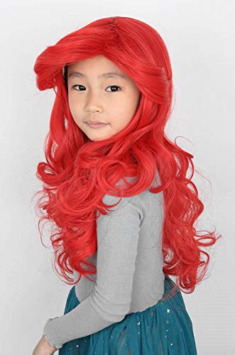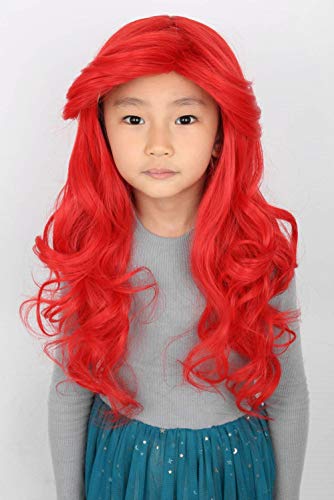 Topcosplay Ariel parrucca per bambini parrucca rossa lunga ricci Halloween costume Cosplay parrucca