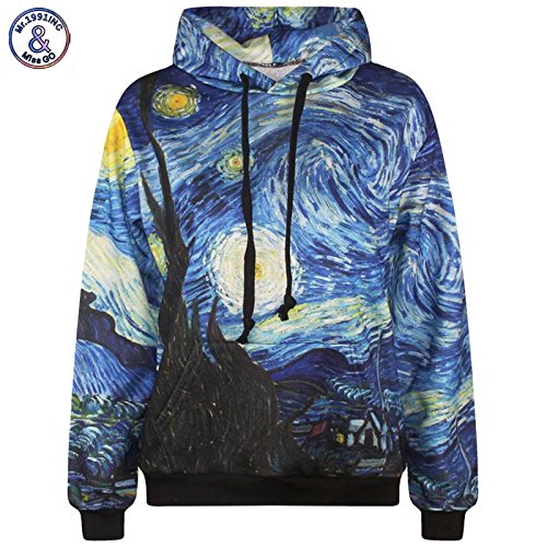 TOPDCLSN Notte Stellata Uomini 3D Felpa Stampa Moda Van Gogh Pittura ad Olio Incappucciati Hoodies Tute Felpa con Cappuccio con Tasche,ae5,M