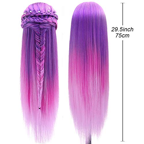 TopDirect 75cm Sintetici fibra Capelli Testa Studio Parrucchiere Testina Parrucchiere Cosmetologia Manichini Parrucchiere Pratica Modello con Morsetto + Accessori Per Capelli
