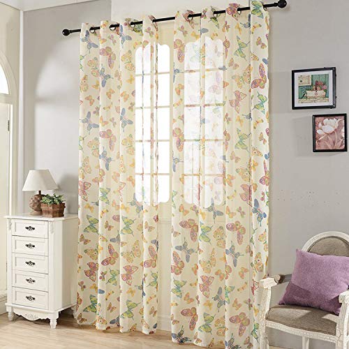 Topfinel Farfalla Stampa Voile Tenda con Occhielli Pura Parete Porta Finestra Balcone,140 x 245 cm, 1 Pezzo, Bianca