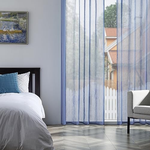 Topfinel Tende per Interni Con Occhielli in Voile Moderne Eleganti Camera da Letto Cucina Cameretta Bambini Soggiorno Tenda Semitrasparenti 2 Pezzi Blu 140x220 CM