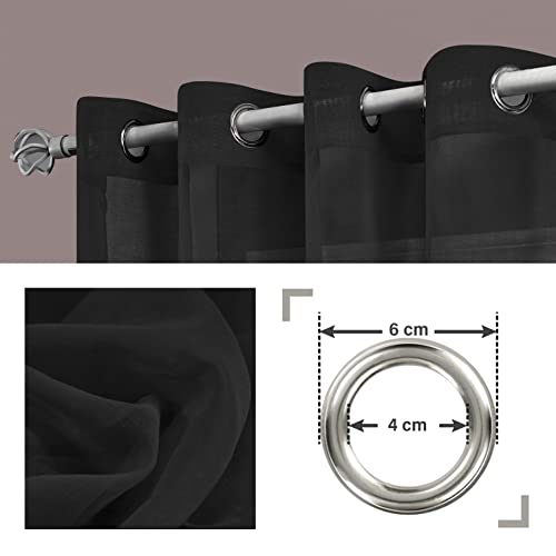 Topfinel Tende per Interni con Occhielli in Voile Moderne Eleganti Camera da Letto Cucina Cameretta Bambini Soggiorno Tenda Semitrasparenti 2 Pezzi Nere 140x245 CM