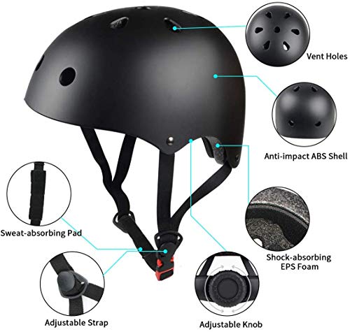 Topfire - Casco da bambino nero / set di protezioni ginocchiere, gomitiere e polsiere, colore nero