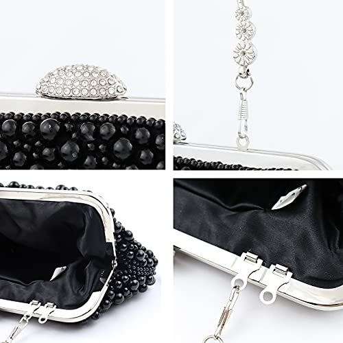 Topfive Perle Pochette da donna Borsetta Bianca pochette Sera Borsetta da Matrimonio con Catena per Nozze Festa sposa (Nero)