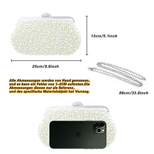 Topfive Perle Pochette da donna Borsetta Bianca pochette Sera Borsetta da Matrimonio con Catena per Nozze Festa sposa (Avorio)