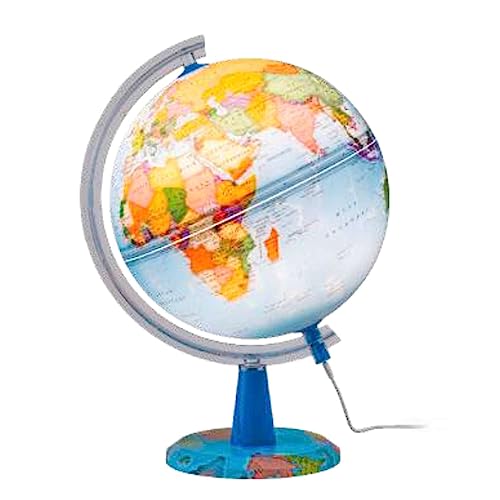 TOPGLOBE Mappamondo illuminato da 26 cm, con mappa inglese, moderno mondo politico, educativo, geografico, decorazione da tavolo