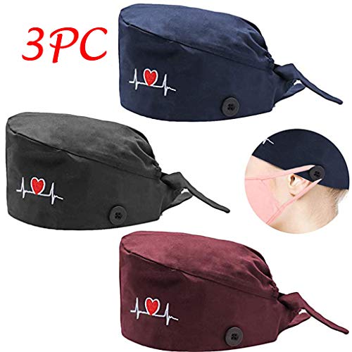Topgrowth 3PCS Berretto Donna Chirurgico Cappello Uomo Cotone Chirurgico con Fascia Regolabile per Fodera Cuffietta Cuffia Infermiera Bandana Chirurgiche (E)