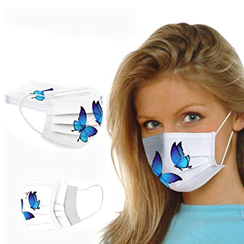 Tophappy 50/100 Pezzi Adulto Tessuto Viso Cotone Stampa farfalla Multicolore 3 Strati Antipolvere Visiera Bocca Faccia USA e Getta Comfort Adattoo per Adulto (50 Pezzi, Z6)