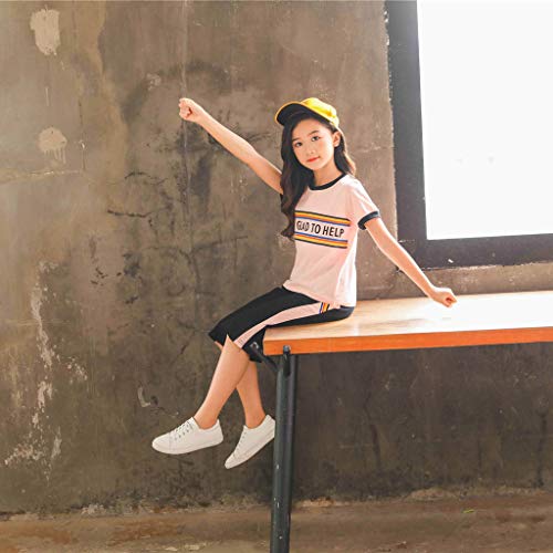 Tophappy Tute Bambine Estate Autunno, 3-13 Anni Completo Bambina 2 Pezzi Set Lettera Maglietta Shirt Tops Manica Corta + Pantaloncini Larghi, Cotone Tuta Ragazza Ragazze (4-5 Anni, Rosa)