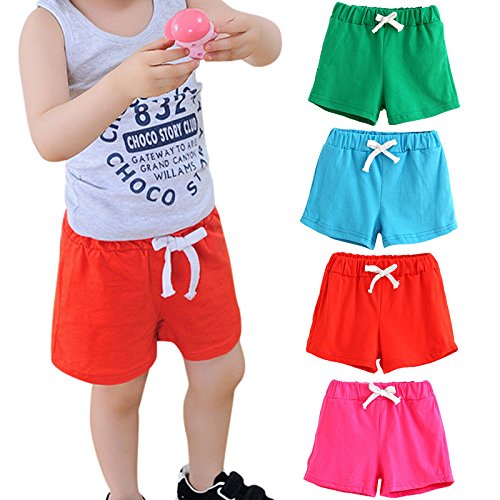 Tophappy Shorts Unisex Ragazzo Ragazza Estate, 2-6 Anni Bambini Coulisse Pantaloncini Breve Pantaloni Tinta Unita Cotone (3 Anni, Verde)