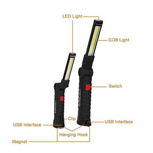 TopHGC Lampada Da Lavoro Ricaricabile Usb Cob, Torcia Pieghevole Per Ispezione Con Clip Magnetica e Gancio Per Auto/Campeggio/Casa e Uso Di Emergenza