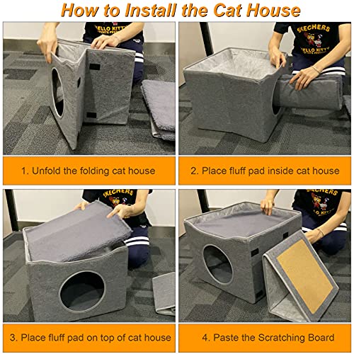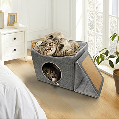 ToPicks Cuccia pieghevole per gatti con lettino, cuccia a 2 strati con vassoio tiragraffi per gatti e 2 cuscinetti reversibili, supporto più forte e caldo letto in peluche
