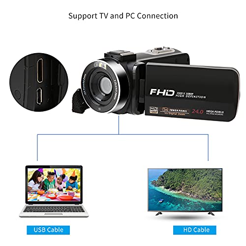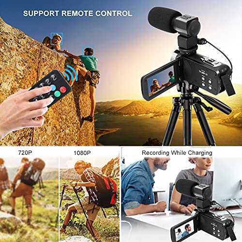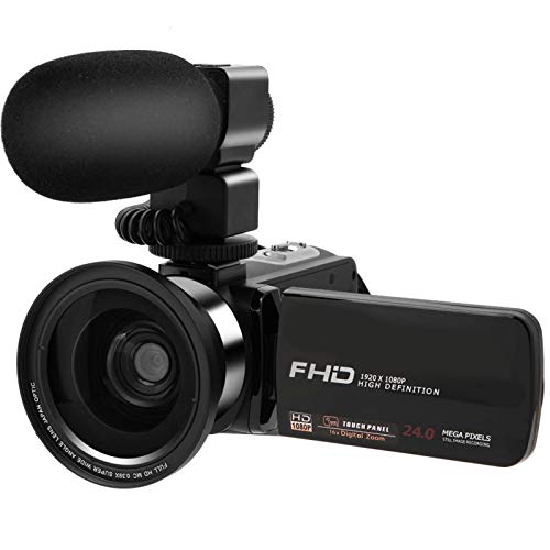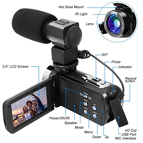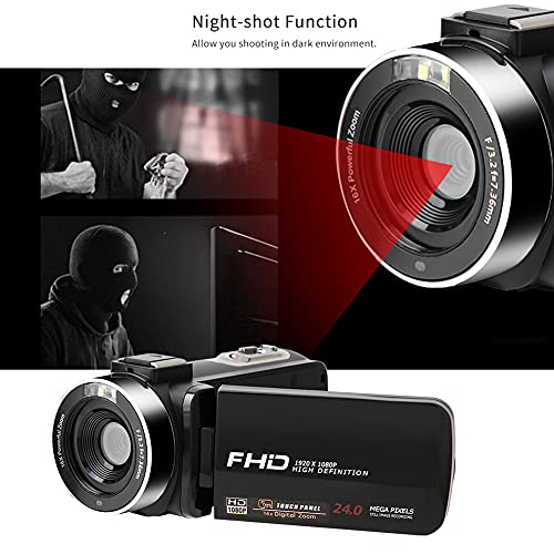 Topiky Videocamera 1080P, touchscreen da 3,0 pollici Videocamera digitale 24 MP Videocamera IR notturna Zoom digitale 16X Telecomando Videoregistratore DV con microfono esterno(#2)