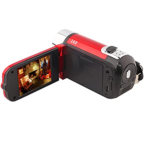 Topiky Videocamera portatile DV 1080P Full HD 16MP Videocamera digitale Schermo di rotazione a 270 ° Supporto digitale con zoom 16X Night Shoot, spina europea (Rosso)