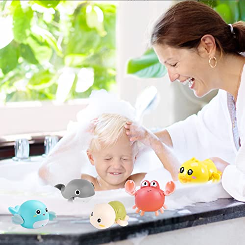 TOPJOWGA Giocattoli da Bagnetto per Bambini, 5 Pezzi Bagnetto Animali Giocattolo, Giocattoli per Bagnetto, Giochi da Bagno Galleggianti, Bagnetto con Animale da Oceano per Bambini