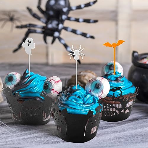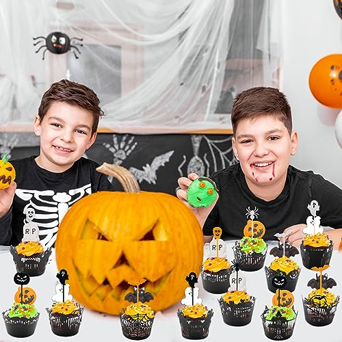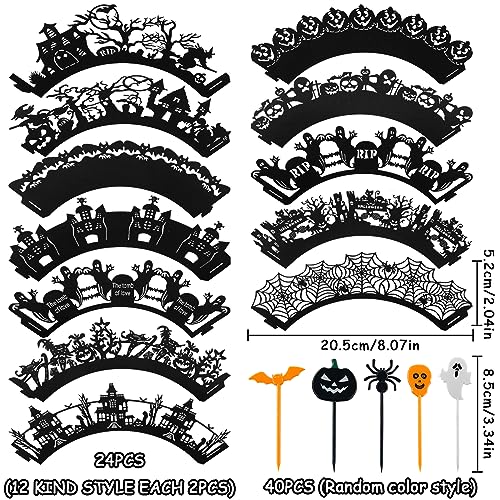 TOPJOWGA Halloween Torta Toppers, 24PCS Halloween Cupcake Wrapper, 40PCS Torta Toppers Halloween, Halloween Cake Toppers, Halloween Cupcake Decorazione, Halloween Topper Decorativo