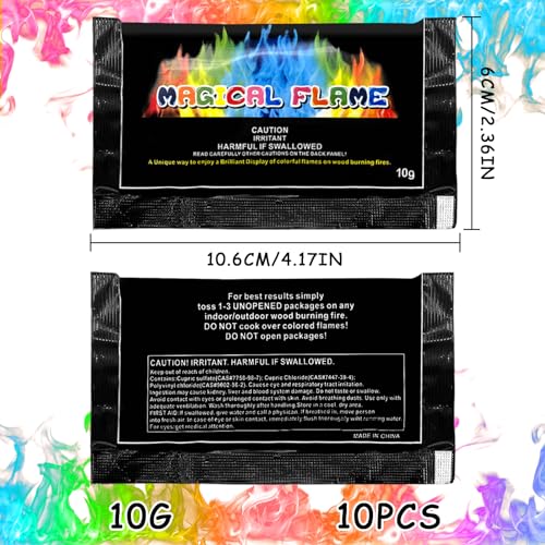TOPJOWGA Polvere Colorata per Bracieri, 10 x 10G Fiamma Colorata, Magic Flame, Colorante al Fuoco, Magic Neon Flames, Polvere Colorata per Fuoco, Fiamma Colorata per Halloween e Natale