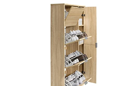 Scarpiera con 4 scomparti reclinabili e robusta porta con specchio. Include un sistema a doppio scompartimento che permette di raddoppiare lo spazio.