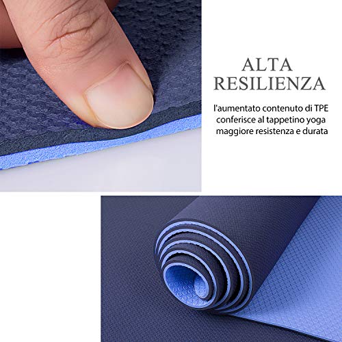 TOPLUS Tappetino da Yoga, Tappetino da Yoga Imbottito e Antiscivolo Fitness Pilates e Ginnastica con Cinturino di TPE,180 x 60 cm (Blu)
