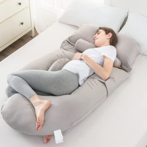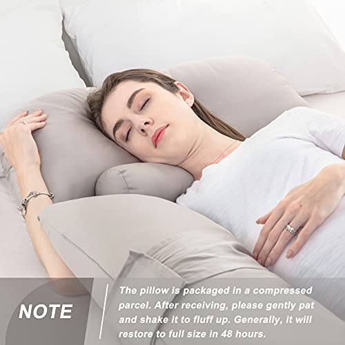TOPLUXE Cuscino Gravidanza e Allattamento per Dormire di Memory Foam, Cuscino per Corpo Forma U con Rivestimento in Cotone (Grigio Chiaro)