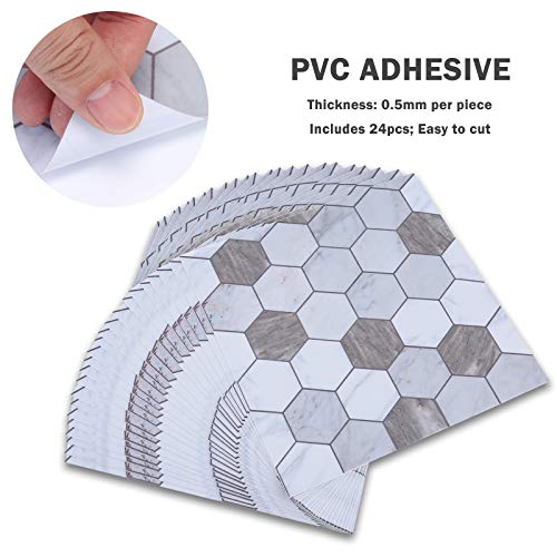 Topmail 24pz Adesivi per Piastrelle Wall Stickers da Mattonelle in PVC Impermeabile Autoadesivo Antiolio Esagono Bianco 20x20cm per Cucina Bagno Fai da Te